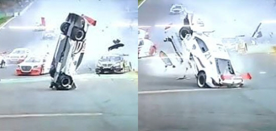 가수 김진표가 국내 최대 레이싱 대회 'CJ 헬로모바일 슈퍼레이스 챔피언십' 레이싱 도중 차량이 공중에서 4~5바퀴가 구르는 대형 사고를 당했다.