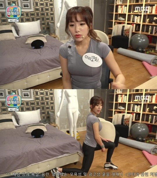 이날 예정화는 '예정화의 DIY 피트니스'를 연출했다. 그는 "84세 노인인데 허리 힘이 약하다"는 시청자의 고민에 런지(허벅지 운동의 일종)를 응용한 맨손 운동법을 직접 선보였다.