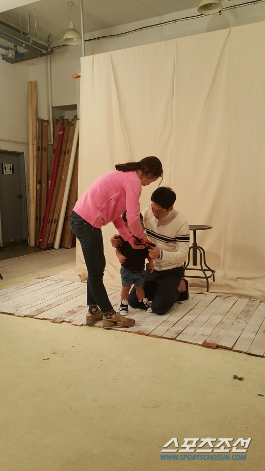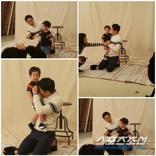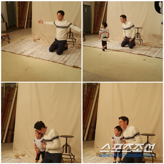본격적인 촬영이 들어갔네요. 서준이부터 가자! 아빠가 양팔 벌려 "서준아"를 불러봅니다. 호기심 많은 서준이 이곳저곳 둘러보느라 정신 없네요. 드디어 휘재 아빠한테 잡혔습니다. 아빠와 아들이 환하게 웃는 모습이 훈훈합니다. 보는 스태프들도 절로 미소가 드리워집니다.