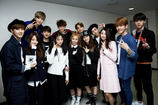 지난 12일, 디아크는 SBS '인기가요'에서 데뷔 무대를 마친 후 공식 SNS을 통해 엑소와 함께 찍은 사진을 공개해 친분을 과시했다.