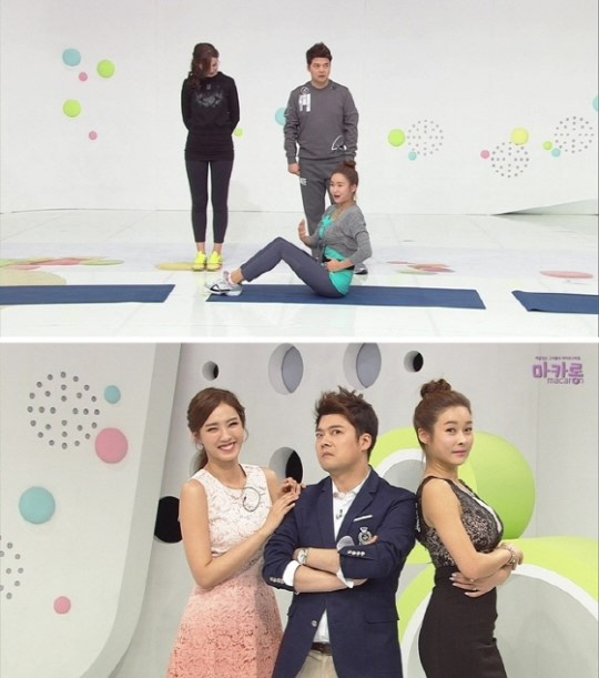 현영은 녹화에서 일일강사로 나서 "기상천외(?)한 운동법으로 출산 후 완벽한 몸매로 거듭났다"며 직접 시연에 나섰다.