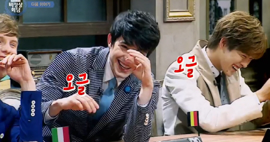 jtbc 인기예능 '비정상회담'에서 댄디한 매력으로 사랑받고 있는 프랑스 훈남 로빈 데이아나. 41회 방송에서는 져지 소재에 가로 스트라이프 패턴으로 이루어진 캐주얼한 자켓으로 눈길을 사로잡았어요. 청량한 네이비 색감이 보는 이들까지 시원하게 만드는 옷이네요. 까르트 블랑슈 제품. 품번은 231E1204, 가격은 32만 8,000원입니다. 남성분들, 꽃놀이 데이트룩으로 제격이네요. <스포츠조선 연예패션팀>