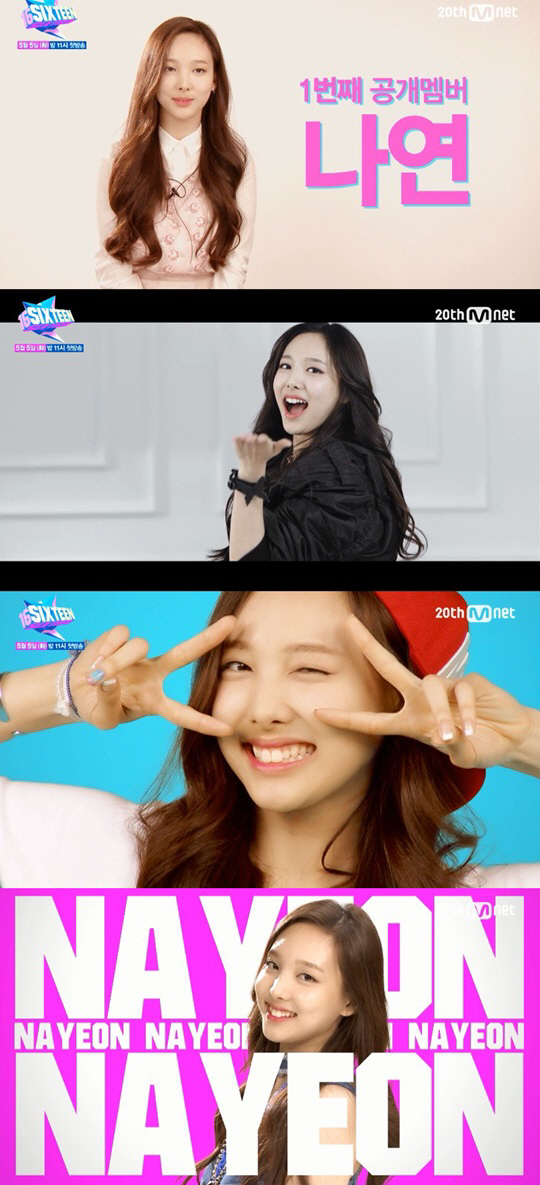 JYP엔터테인먼트와 Mnet이 공동 기획한 신인 걸그룹 데뷔 리얼리티 프로그램 '식스틴(SIXTEEN)'의 첫 번째 주인공 나연이 공개됐다.