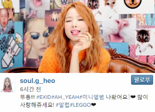 걸그룹 EXID 신곡 '아예'(Ah Yeah)) 음원 및 뮤직비디오가 공개된 가운데, 멤버 솔지가 많은 응원을 부탁했다.