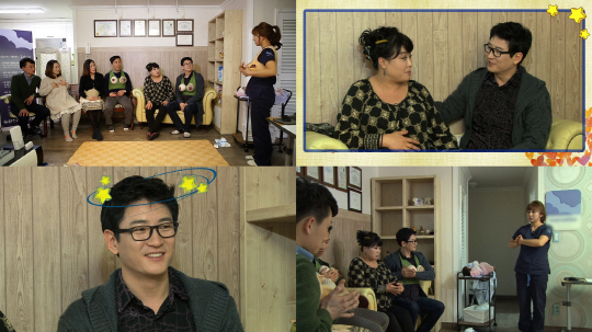 본격적인 수업이 시작되자 먼저 가슴 마사지 교육을 받기 시작한 세 쌍의 부부들은 가슴 모형의 조끼 때문에 모두들 얼굴이 빨개지고 말았다고. 하지만 부끄러움도 잠시, 홍지민의 남편은 이내 진지한 태도로 수업에 임해 홍지민을 뿌듯하게 했다는 후문이다.