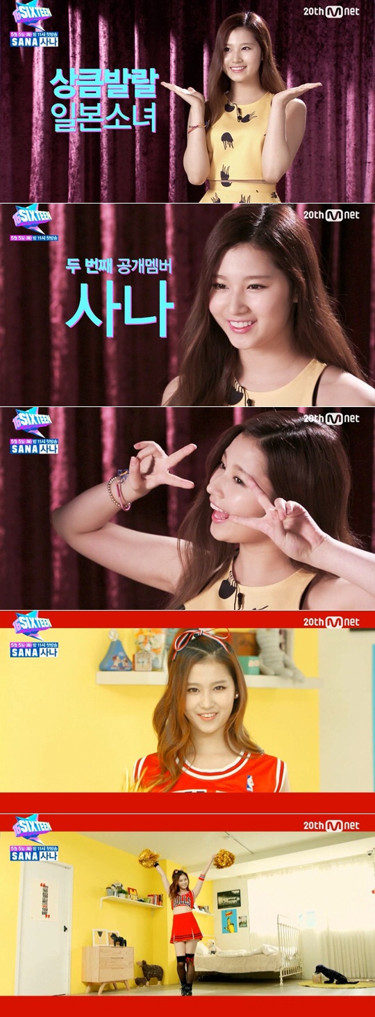 JYP엔터테인먼트는 14일 오후 4시 '식스틴' 공식 페이스북, 트위터와 네이버 TV 캐스트를 통해 두 번째 멤버 사나의 티저 영상을 공개했다.