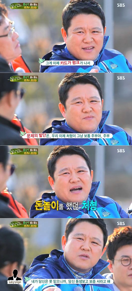 또 김구라는 "집안이 서로 분위기가 정말 다르다. 나는 예전에 어려울 때에도 형한테 10만원도 꿔본 적이 없다"며 "그런데 우리 처가는 '우리 형제가 못 살면 내가 그걸 어떻게 보냐'라는 식이다. 결혼 초기에 처남이 어렵다고 하니까 카드를 빌려달라고 했는데, 그 카드가 펑크가 나서 집사람이 신용불량자가 돼서 은행 거리가 되지 않았다. 그래서 집사람이 주변 사람들한테 돈을 꾼 것"이라고 설명했다.
