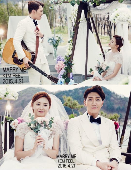 김필은 14일 개인 SNS를 통해 "2015.04.21. Marry me"이라는 글과 함께 웨딩화보 같은 달콤한 티저 이미지를 직접 게재했다.