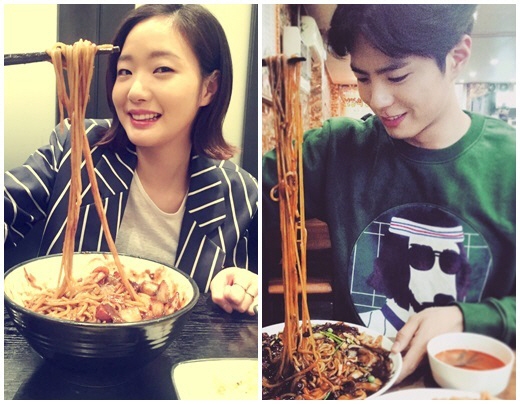 '블랙데이' 김고은 박보검 '보고커플', 맛깔나는 짜장면 먹방 인증샷
