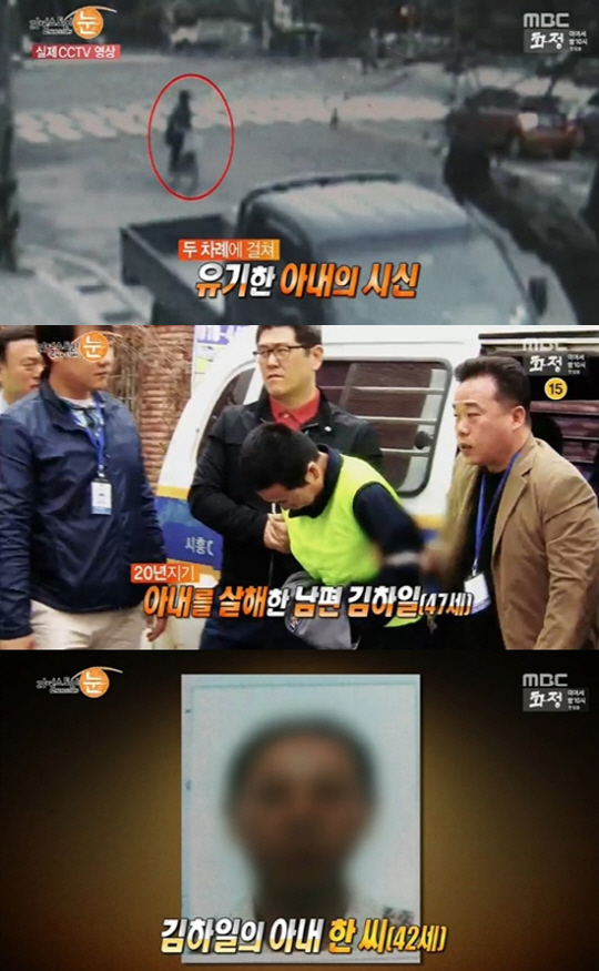 14일 방송된 MBC '리얼스토리 눈'에서는 최근 논란을 일으킨 시화호 토막 살인사건의 전말과 시체 유기 당일 CCTV가 공개됐다.
