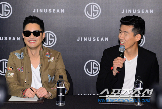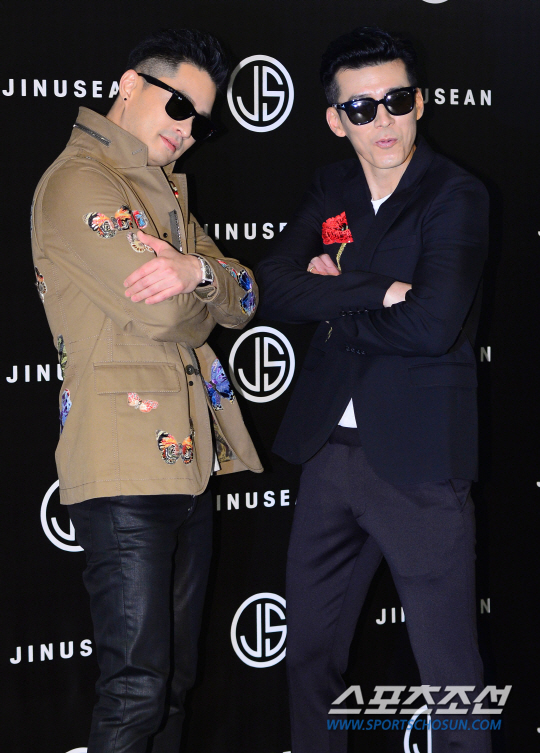 힙합 듀오 지누션이 15일 오후 서울 장충동 반얀트리 클럽 앤 스파 서울에서 컴백 기자회견을 열었다. 11년 만에 돌아온 지누션은 컴백곡 '한번 더 말해줘'가 15일 0시 공개 이후 6개 음원 차트에서 정상에 오르며 인기몰이 중이다. '한번 더 말해줘'의 작사에는 에픽하이의 타블로와 지누션, 작곡에는 타블로와 P.K, Fraktal이 참여하며 곡의 완성도를 높였다. 또한 'K팝스타3' 출신 장한나가 피처링해 관심을 모으고 있다. 기자회견에서 포즈를 취하고 있는 지누션. 송정헌 기자 songs@sportschosun.com/2015.04.15