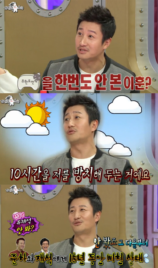 배우 이훈이 개그맨 유재석과 정준하에 삐친 사연을 털어놨다.
