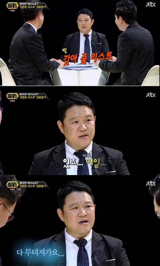 김구라는 16일 방송된 JTBC '독한 혀들의 전쟁-썰전'(이하 썰전)에서 "'김구라 리스트'가 있다"고 말해 시선이 집중됐다.