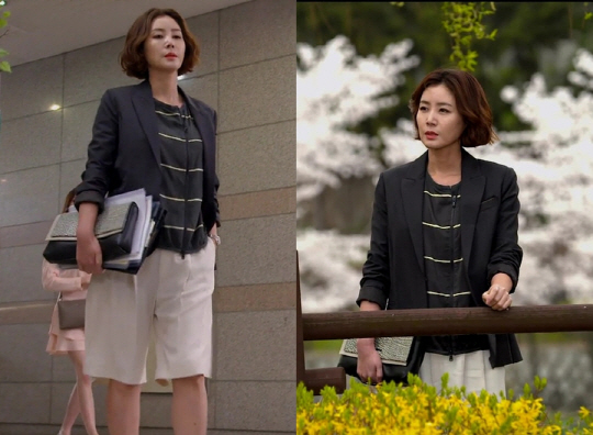 MBC '여왕의 꽃' 9회에서 김성령은 젠틀우먼룩의 표본을 보여줬어요. 짙은 그레이컬러의 재킷에 화이트컬러 와이드 숏팬츠를 매치한 모습에서 모던함이 가득 풍깁니다. 도도함까지 더할 수 있었던 건 손에 살짝 쥔 클러치 때문. 화이트, 그레이의 배색과 가죽 텍스쳐가 고급스럽네요. 브루노말리의 신제품 마르첼라. 품번은 H9CF132FE3, 가격은 40만원대입니다. <스포츠조선 연예패션팀>