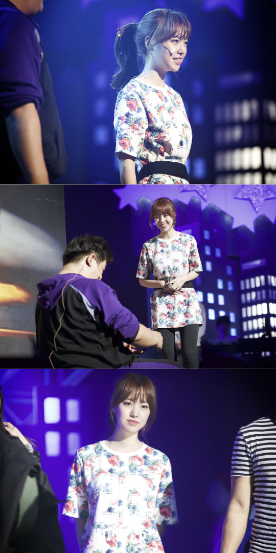 '개그콘서트' 측은 공식 페이스북을 통해 진세연의 리허설 현장 모습이 담긴 사진들을 공개했다. '회장님'으로 등장하는 개그맨 유민상과 함께 호흡을 맞추며 환한 웃음을 짓고 있는 진세연의 모습이 눈길을 끈다.