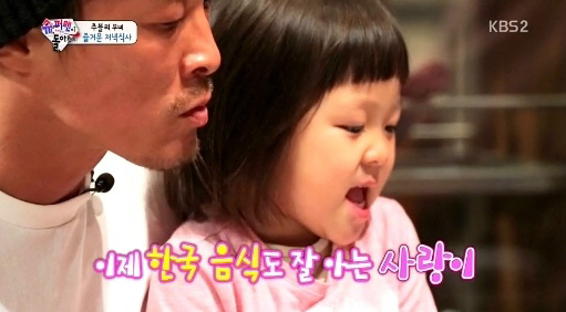 이날 추사랑은 한식당에서 깍두기, 열무김치 등이 나오자 "김치네"라며 완벽한 한국어를 자랑했다.