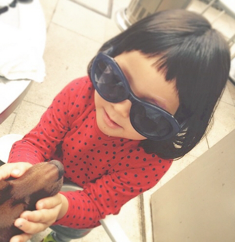 추사랑은 커다란 선글라스를 착용한 채 반려견 쿄로의 얼굴을 쓰다듬고 있어 눈길을 끌었다.