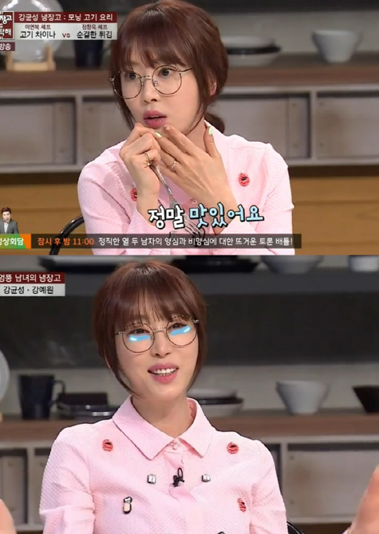 jtbc '냉장고를 부탁해'에서 톡톡튀는 매력을 어필한 강예원, 그에 걸맞는 블라우스 또한 화제입니다. 연한 파스텔톤 핑크 컬러 바탕에 사과, 보석등의 아기자기한 장식이 달려있어 러블리합니다. 깔끔한 셔츠 스타일로 다양한 룩에 레이어드 하기 좋을 것 같아요. 오즈세컨의 제품. 품번은 2WMP1WB06300, 가격은 32만원대. <스포츠조선 연예패션팀>