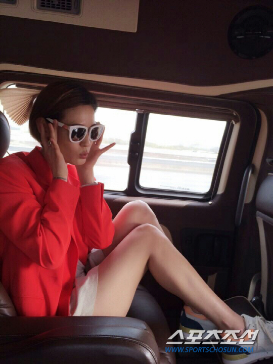 이날 착용한 톡톡 튀는 색감의 오렌지 컬러 재킷이 그녀의 설렌 마음을 잘 표현해주고 있네요. 한국에서 매니쉬룩을 압도적으로 잘 소화한다는 평을 듣고 있는 그녀. 발랄한 컬러를 걸치니 전혀 다른 얼굴이 보이는데요. 화이트 이너와 베이지 색 쇼츠에 연한 오렌지나 톤 다운된 블루 컬러가 포인트인 화이트 운동화가 화사한 재킷과 전반적으로 잘 어우러집니다. 그런데 모델이라 그런지, 다리가 정말 길죠~ 숏팬츠에 운동화로도 결코 굴욕없는 다리 길이, 부러워서 눈물이 다 나잖아요~.