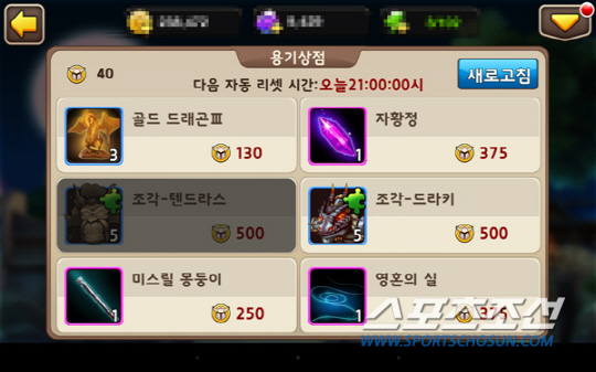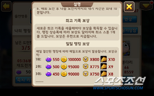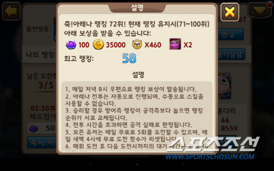 그리고 아레나는 유료 아이템을 구매할 수 있는 스톤을 최대 8,000개 정도 얻을 수 있는 보고이며, 매일 등수를 유지하면 이에 따른 보상도 두둑하다. 100위권 이내에서는 1등수만 올려도 10개 이상의 스톤을 얻을 수 있으니 에너지와 소탕권 구매로 부족해진 지갑을 채울 수 있는 가장 유효한 장소다.
