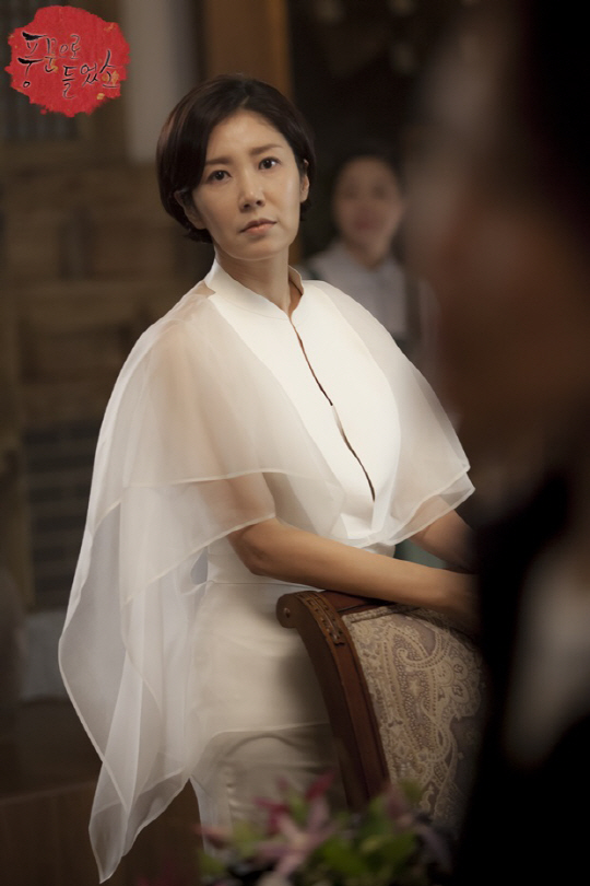 '옷이 날개다'는 비유적 표현도 백작부인에게는 현실에서의 일이다. 유호정이 입은 화이트 컬러 민소매 원피스에 달린 시스루 쉬폰 디테일은 신비스러운 분위기 마저 전한다. 겹으로 되어 있는 천이 실제 날개를 연상케하고, 전체적인 실루엣과 색감은 여성스러운 우아함을 극대화시킨다. 실루엣 사이 은근히 드러난 바디라인도 고혹적이다. 블라우스는 랄프로렌.