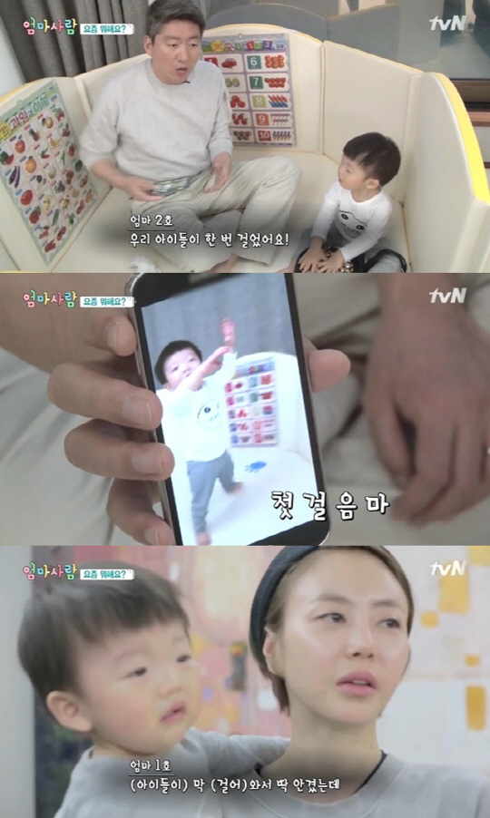 22일 오후 방송된 tvN '엄마사람'에서 황혜영 쌍둥이 아들이 첫걸음마를 떼는 순간이 그려졌다.