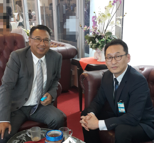 ◇27일 MOU를 체결하는 MPOB 다토 완 무하메드 회장(왼쪽)과 JM ECO GLOBAL 박준태 대표.