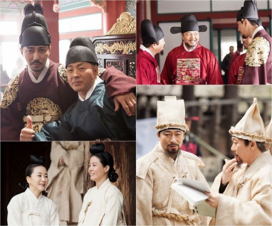 뿐만 아니라, 극 중 광해를 위해 온갖 악행을 저지르는 '악역콤비' 정웅인, 김여진은 악역이라는 말이 무색하게 봄볕같이 따뜻한 미소를 터뜨리고 있어 시선을 사로잡는다. 이어 극중 절친 '한음과 오성'으로 등장하는 이성민과 김승욱은 촬영대기 중에도 서로 대본을 나눠보며 '절친 케미'를 발산하고 있어 시선이 집중됐다.