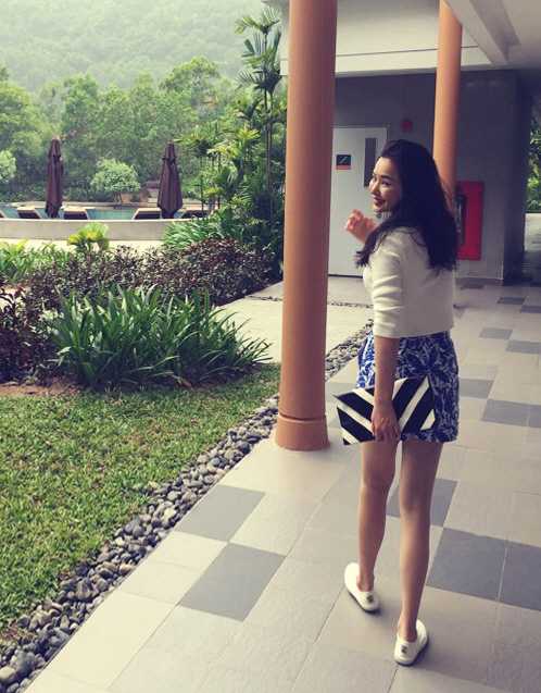 촬영 차 베트남으로 떠난 이하늬가 자신의 SNS에 화보 같은 일상을 공개했습니다. 깨끗한 화이트 컬러 상의에 유니크한 패턴의 블루 컬러 스커트를 매치, 편안한 듯 스타일리쉬함을 잃지 않은 모습입니다. 특히 돋보이는 것은 스네이크 패턴이 가미된 클러치 백. 블랙과 그레이 컬러로 블로킹된 느낌이 모던하고 고급스럽네요. 번의 쉐브론 클러치. 가격은 45만원입니다. <스포츠조선 연예패션팀>