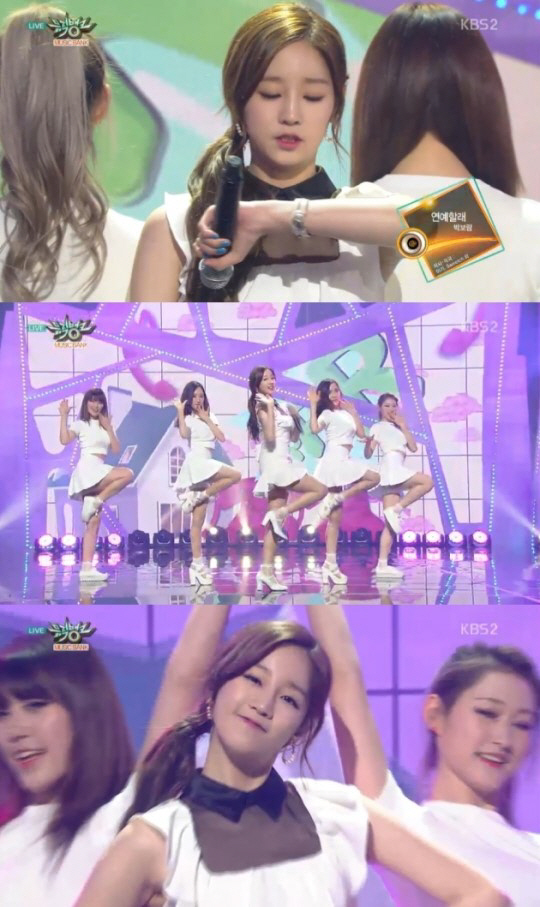 가수 박보람이 '뮤직뱅크'에서 깜찍한 무대 매너로 '연예할래'를 꾸몄다.