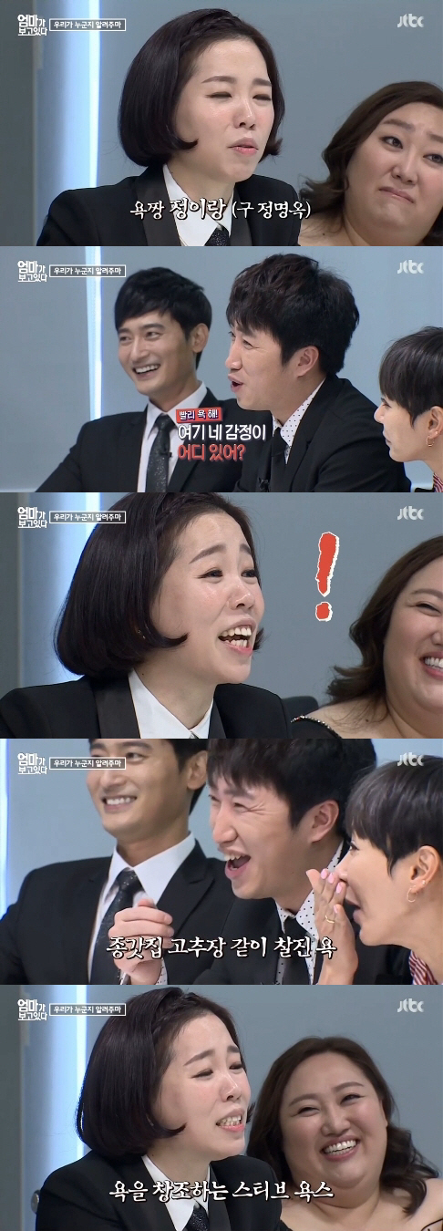 정명옥에서 이름을 개명한 개그우먼 정이랑은 4월 25일 첫 방송된 JTBC 새 예능프로그램 '엄마가 보고있다'에서 장동민에게 욕을 한바가지 퍼부었다.