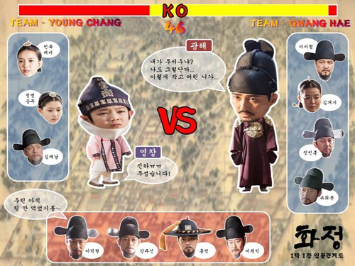 공개된 특별 인물 관계도는 이 같은 두 세력 간의 첨예한 대립을 위트 있게 표현하고 있다. 광해군과 영창대군은 대전격투게임의 캐릭터로 변신해 마주 서있는데, 게임 캐릭터답게 깜찍한 가분수의 모습을 하고 있어 웃음을 자아냈다. 더욱이 지난 방송에서 광해군이 영창대군을 정적으로 바라보며 내뱉었던 명대사인 "내가 무서우냐? 나도 그렇단다. 이렇게 작고 어린 니가"가 깨알같이 삽입돼 있어 눈길을 끈다.