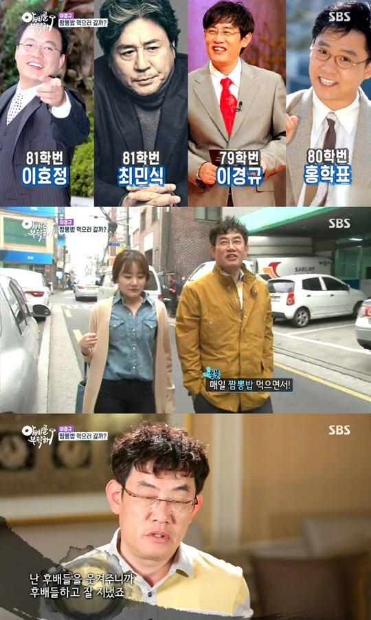 이어 이경규는 "최민식, 홍학표, 이효정과 함께 매일 짬뽕밥을 먹으면서 이 동네를 방황했다."라며 "나는 후배들을 웃겨 주는 선배였다. 굉장히 가깝게 지냈다"라고 전했다.