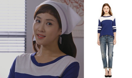 SBS 새 드라마 '이혼변호사는 연애중' 2회에서 조여정은 상큼한 그녀의 매력을 돋보이게하는 긴팔 티셔츠를 입고 등장했습니다. 화이트와 블루컬러가 적절히 배색되어 발랄하고 경쾌한 무드를 가득 선사해요. 이에 깔끔한 화이트컬러의 팬츠를 매치, 캐주얼하고 영(Young)한 감각을 살렸어요. 여성분들의 스타일링에서 중요한 점은 자신의 장점을 가장 부각시킬 수 있는 룩을 선택하는 것. 비록 화려한 옷은 아니지만 최강 동안 그녀의 풋풋한 외모를 잘 드러내기에는 제격인 아이템이에요. 감각적인 컬러에서 나오는 캐주얼한 느낌이 뱅 헤어스타일과도 잘 어우러져 소녀스러운 면모를 강조했습니다.