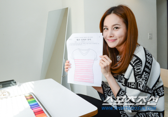 가수 아이비가 자신이 디자인한 스트라이프 티셔츠를 들고 방긋 웃고 있다. 합정동=정재근 기자 cjg@sportschosun.com/2015.04.21/