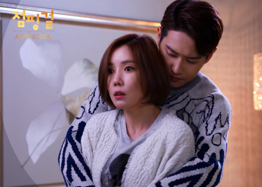 웹드라마 '점핑걸'의 스틸컷이 공개됐다. 공개된 스틸컷에는 극 중 화려한 아이돌 스타 '서아신' 역할을 맡은 블락비 비범이 엘리트 경호원 '이예니' 역을 맡은 시크릿 정하나에게 아련한 백허그를 하고 있는 장면이 담겼다.