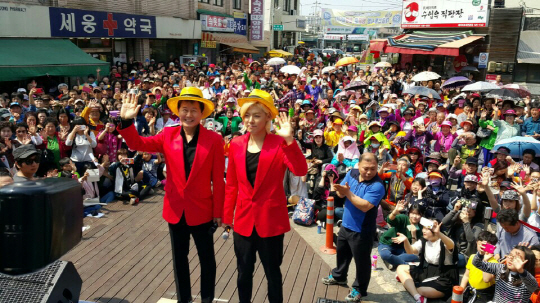 태진아와 강남이 듀엣곡 '전통시장'을 들고 이번엔 태평시장을 찾아 폭발적 열기를 이어갔다.
