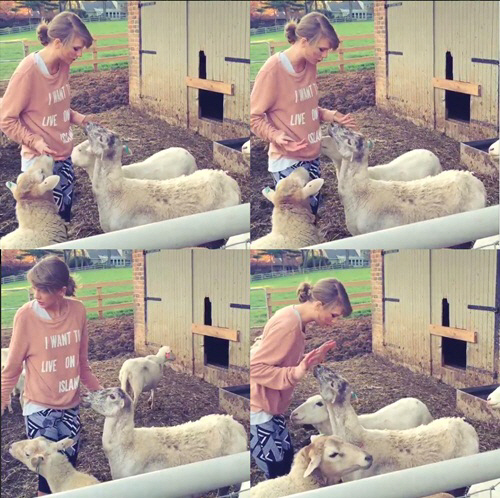 테일러 스위프트는 4월 27일(이하 현지시간) 자신의 인스타그램 계정에 축사의 양들에게 대화를 시도하고 있는 영상을 게재했다.