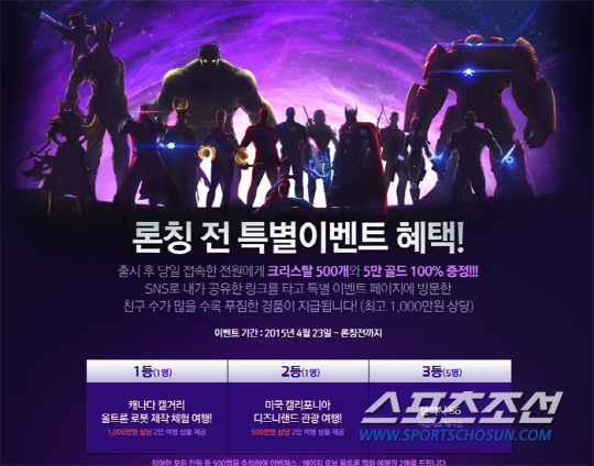 넷마블게임즈와 마블이 손잡고 선보이는 '마블 퓨처파이트'는 오는 30일 애플은 물론 구글 스토어에 동시 출시될 계획이다. 게임과 이벤트에 관련된 자세한 내용은 이벤트 페이지(http://marvelfuturefight.netmarble.com/)를 참고하면 된다.