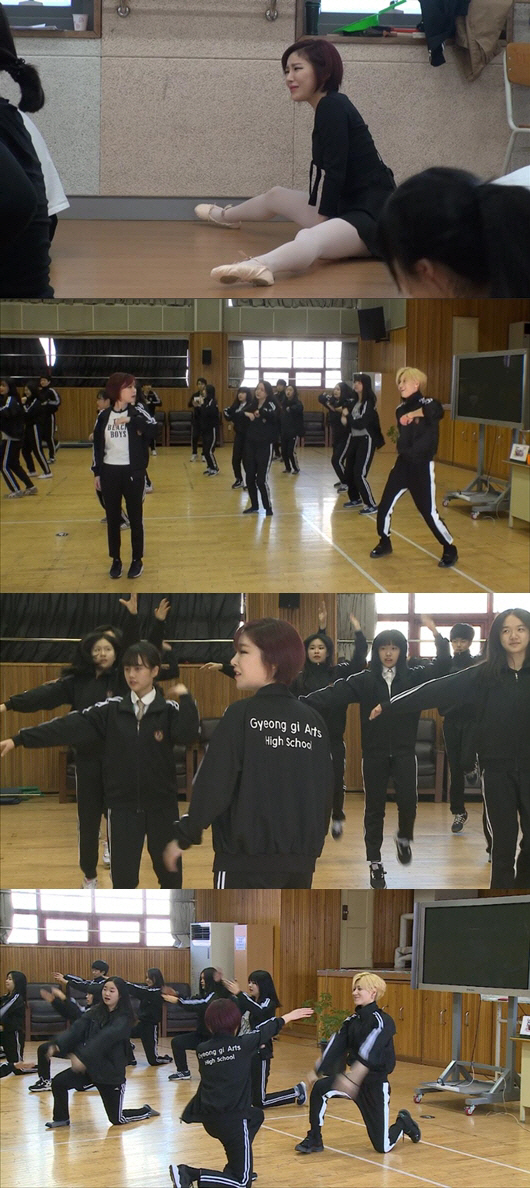28일 방송되는 JTBC '학교 다녀오겠습니다' 경기예술고등학교 편에서 가인은 치어리딩 수업 도중 혼자서만 안무를 따라 하지 못하고 '멘붕'에 빠졌다.