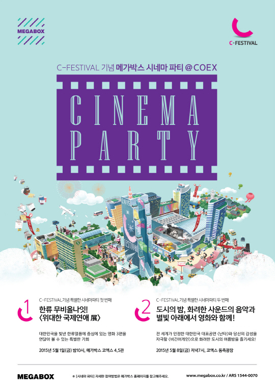서울 삼성동 무역센터 전역에서 개최되는 C-페스티벌을 기념해 기획된 이번 행사는 1일 영화 3편을 연달아 볼 수 있는 무비 올나잇 '위대한 국제 연애전'에 이어 8일 진행되는 '별빛 아래 시네마 파티'로 진행된다.