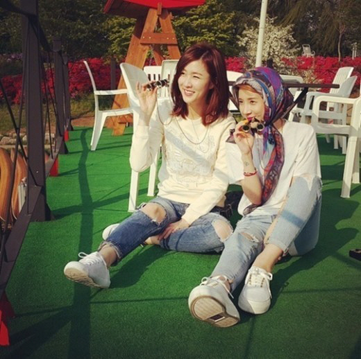공개한 사진에는 서인영과 이수경이 흰티에 청바지를 입고 다정히 앉아 있는 모습이다. 사랑스러운 매력을 자아내는 서인영은 스카프를 얼굴에 두른 채 걱정스러운 표정을 하고 있어 눈길을 끈다.