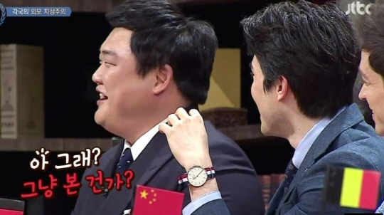 jtbc 예능 프로그램 '비정상회담'의 프랑스 미남 로빈은 프랑스 국기에서 모티브를 얻은 듯한 디자인의 손목시계를 착용했습니다. 네이비와 화이트, 레드 컬러가 가지런히 배색되어 유니크하면서도 클래식한 느낌을 주네요. 로빈처럼 수트 차림에도 좋지만 가벼운 반팔 티셔츠와 함께해도 멋질 것 같아요. 다니엘 웰링턴 제품. 품번은 0103DW, 가격은 23만 8,000원입니다. <스포츠조선 연예패션팀>