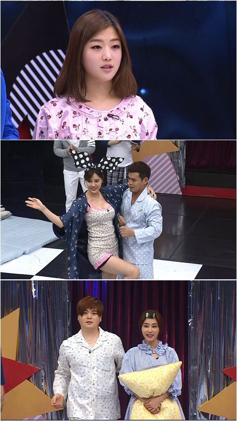 이어 강예원은 귀여운 원피스 파자마를 입고 파트너인 문희준과 런웨이 워킹을 하던 도중 다리를 180도로 찢는 퍼포먼스를 선보여 눈길을 끌었다. 강예원은 "실제로 잘 때 이런 파자마 원피스 안에 아무것도 안 입고 잔다"고 말해 모두를 놀라게 했다. 이에 질세라 키썸은 "나는 집에서 잘 때 아예 아무것도 입지 않는다"는 더욱 강력한 발언으로 스튜디오를 발칵 뒤집었다는 후문이다.