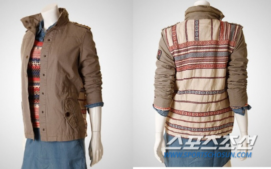 교복을 이용한 다양한 스타일링을 보여주는 김유정은 MBC '앵그리맘' 12회에서 뒷부분이 옅은 카키컬러의 야상 재킷을 착용했어요. 드라마에선 잘 나오지 않았지만, 뒷면 가득 에스닉한 문양의 패턴이 그려진 독특한 제품입니다. 어깨부분의 견장 디테일 또한 유니크하네요. 타미힐피거 데님의 코튼 캔버스 야상 재킷, 품번은 TUMP1JJE14A0, 가격은 23만원대입니다. <스포츠조선 연예패션팀>