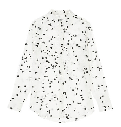 SBS 드라마 '냄새를 보는 소녀' 9회에서 신세경은 매력적인 화이트 셔츠를 입고 등장했습니다. 기본 셔츠실루엣으로 깔끔한 느낌을 주면서도 별 모양 프린팅이 발랄함과 유니크함을 선사하네요. 데님 혹은 슬랙스팬츠와 매치하면 좋겠네요. 이큅먼트의 스태리 나잇 실크 셔츠(Starry Night Silk Shirt), 가격은 21만원대입니다. <스포츠조선 연예패션팀>9회