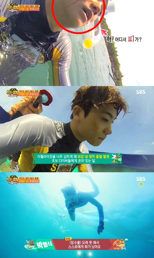 이날 박형식은 김병만의 지도에 따라 잠수에 나섰다. 그런데 박형식이 갑작스럽게 코피를 쏟아 눈길을 끌었다.