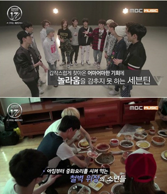 또한 이날 숙소에서 갓 일어난 세븐틴 멤버들의 모습이 공개되는가 하면, 아침부터 중국음식을 배달시켜먹는 솔직한 일상을 보여줘 관심을 모으기도 했다.