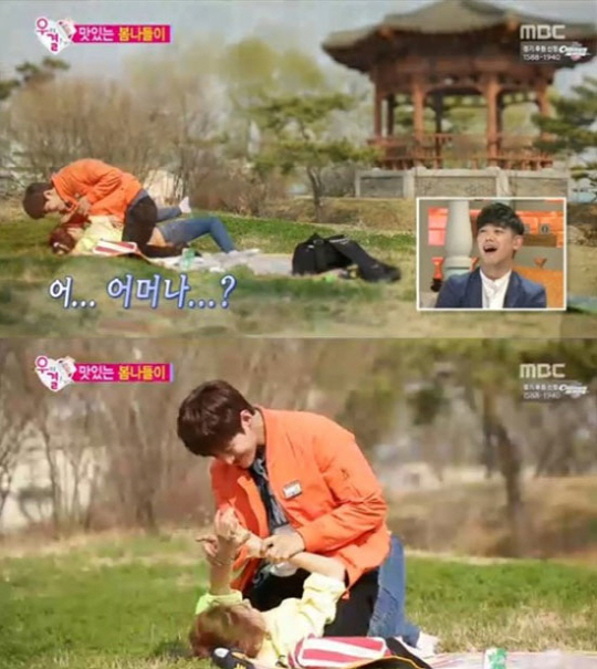 송재림은 흥분한 나머지 김소은과 티격태격 했고, 아찔한 자세로 잔디밭 위 레슬링을 시작했다. 김소은은 송재림의 습격에 속수무책으로 당했고, 송재림은 김소은이 발로 자신을 밀어내자 김소은에게서 떨어지며 아찔한 장면을 연출했던 잔디밭 육탄전을 끝냈다. <스포츠조선닷컴>