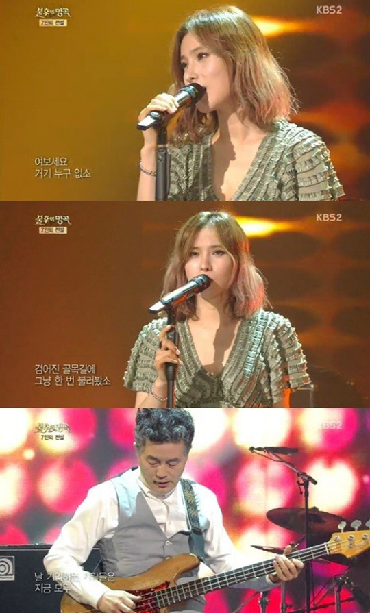 거미는 2일 방송된 KBS 2TV 예능프로그램 '불후의 명곡'에서 '누구 없소'를 불렀다.